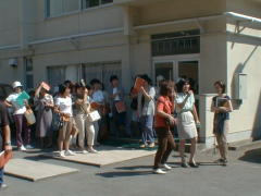 総勢40人にもなるなんて、最初の練習日には、思っても見なかったです。 楽しかったです。(練習の日も含めて) こあいだ下の子の中学で合唱祭があったのですが、最後が大地讃頌でした 聞きながら、おもわず口ずさんでました。 歌うのって、結構楽しいんだなって思いました。 (小畑) 蕨高祭での合唱に際して ご指導して下さる 皆々様の温かいお心に励まされ 最後までついていけましたこと心よりお礼申し上げます。 今有線で 平井堅さんの「大きな 古時計」がよくながれて いるのが聴かれます。 あの「おーおーきな のっぽの ふるどけい」と聴く度に蕨高祭の 午後2時の明る い 陽射しをうけた中庭の風景がなつかしくよみがえります。 そして汗の中練習にかよった日々を思い出します。 高柳さんのきれいな声と指揮、大原さんのどこからでも メロディーのでてくるピア ノの調べ、 木谷さんの譜面を配るおと。 そして柳沢さんが何回か練習にきてくださった高柳くんと「まるで親子の様ですね」 と いわれた 土曜日練習の勤労青少年ホームでの練習風景。。。。等 なつかしい思い出はきりがありません 感謝とお礼もうしあげます。 おつかれ様でした。 (山崎) 木谷さんからの誘いではじめた合唱。 高柳さんと大原さんの指導者のもとで練習ができて、 とても楽しく練習させていただきました。 仕事と雑用で毎日が忙しい私は続けられるか心配でしたが、 楽しい練習と、楽しさの中に本物の指導を受け、 真剣に練習させていただきました。 一度はやってみたかったアルト、とても難しかったです。 なかなか音が取れなくて大変でした。 まだまだ練習不足でしたが発表できてよかったです。 もっと練習続けたかったです。 終わってしまってちょっと寂しいです。 木谷さん、高柳さん、大原さんありがとうございました。 来年もできたらうれしいですね。 (岩澤) 「コーラスのお知らせ、もらったの?」 「うん、でもお母さんには絶対関係ないと思って捨てちゃった。」 確かに、わたしはコーラスとは無縁の12年間を過ごしてきました。 娘が幼稚園に入った時、上の子のPTA仲間からママさんコーラスに誘われ、 1年だけやっていたことがありました。娘の記憶には残っていなかったのでしょう。 そして、私のも記憶の底に埋もれていたことがありました。 夏休みのある日、教室の後ろで静かにしているのよ、とお絵かきの道具を持って練習に娘を連れて行きました。 指導の男の先生が指揮をしながら突然、ニタッとされたので先生の視線をたどると、 娘が先生に向かい合い真似して手や腕を振り回していたのです。 こんな娘の幼い日の姿を、蕨高PTAコーラスは思い出させてくれました。 また、家で高柳先生の話をしたり、歌の練習をしていると、「楽しそうだね。」 「うん、楽しいよ。」と言う会話が何回も繰り返されました。効果は娘に教えてもらい、 歌えるようになりました。 練習には少ししか出られませんでしたが、本当に楽しい時間をたくさん持たせて下さった PTAコーラスに感謝しております。 (香川) 僕は、合唱団結成から、文化祭の当日の合唱に限定することなく、 感想を申し上げたいと思います。 蕨高校着任以来、保護者の皆様(PTAの役員の方々ということになると思いますが)に、 本当によくしていただき、感謝の気持ちしかありません。 先ず初めの離任式。 次は、もう7月の高校野球の応援。 そして、PTA研修旅行。 車に酔ってしまった僕ですが、 それでも、本当に楽しい、思い出に残る旅行をすることが出来ました。 蕨高校に勤めて、まだ数ヶ月の僕ですが、 蕨高校のPTAの役員の方の温かさ、 素晴らしい雰囲気、そんなことを実感した次第です。 我々教職員と一緒に、 イヤむしろ、保護者の皆様が主導権を握ってかもしれませんが、 (井上の一方的な見方で申し訳ありません。)蕨高校を盛り上げていこうという姿 勢、本当に感激! 少しでもお役に立てればと思って参加させていただいた合唱団です。 本当にありがとうございました。 折をみて、祝杯をあげたいですネ。 (井上) 去年の葉っぱのフレディーの時と同じように、私はできるだけ多くの人に参加 を、呼びかけ、一緒に歌いましょうと声をかけることが、最も時間のかかる 作業でした。 名簿を片手に、顔と名前が一致し、何かを一緒に作りあげることを楽しめそうな 人はいないものかと、せっせと、電話を掛けました。一度でだめなら、二度、三 度と電話をしました。 そのうち、学校に、参加を呼びかけるプリントを見て申し込みをしてくださる 人も現れ、少しずつ人数が増えていきました。 練習は全部で8回あり、皆勤は、指揮者の高柳さん、ピアノの大原さん、そし て、マネージメント係の私、木谷の3人。 1回しか練習に参加できない人も、本番のみという人も、文化祭当日はお揃いの Tシャツに星を自由にプリントしたものを身につけ、吹奏学部の前に整列しまし た。 蕨高校校歌に始まり、見上げてごらん夜の星を、そして最も練習を