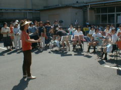 | 1週間前 炎天下での吹奏楽部との合同練習。 20分程度でも熱中症になりそうな暑さだ。 それでも練習に熱中。  |